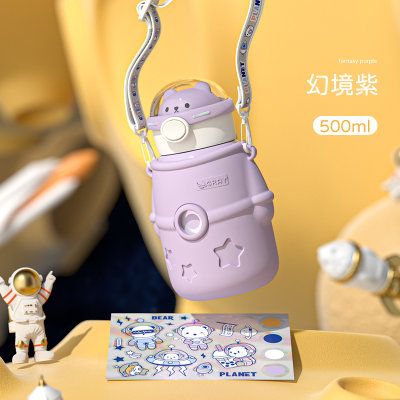 小茶日记 宇航熊趣饮时光吸管杯 幻境紫 700ml