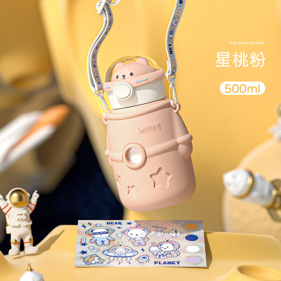 小茶日记 宇航员保温杯 星桃粉 500ml