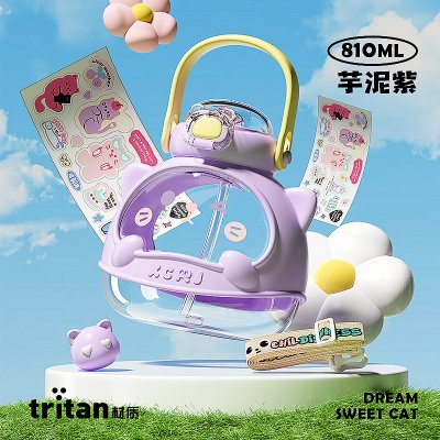 小茶日记 梦境甜心喵吸管杯 芋泥紫 810ml