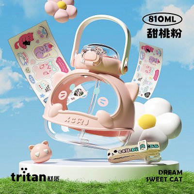 小茶日记 梦境甜心喵吸管杯 甜桃粉 810ml