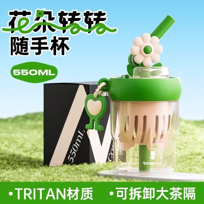 可可猫(Coco smile)花朵转转随手杯(TRITAN)550ml-绿色