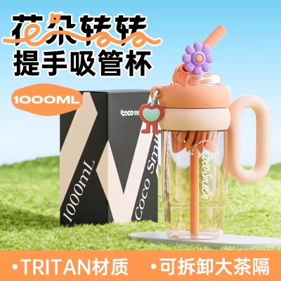 可可猫(Coco smile)花朵转转月牙提手杯(TRITAN)1000ml-粉色