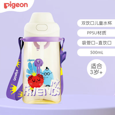 贝亲(Pegion)儿童双饮口PPSU水杯 小糖豆和朋友们 500ml 3岁+ DA172