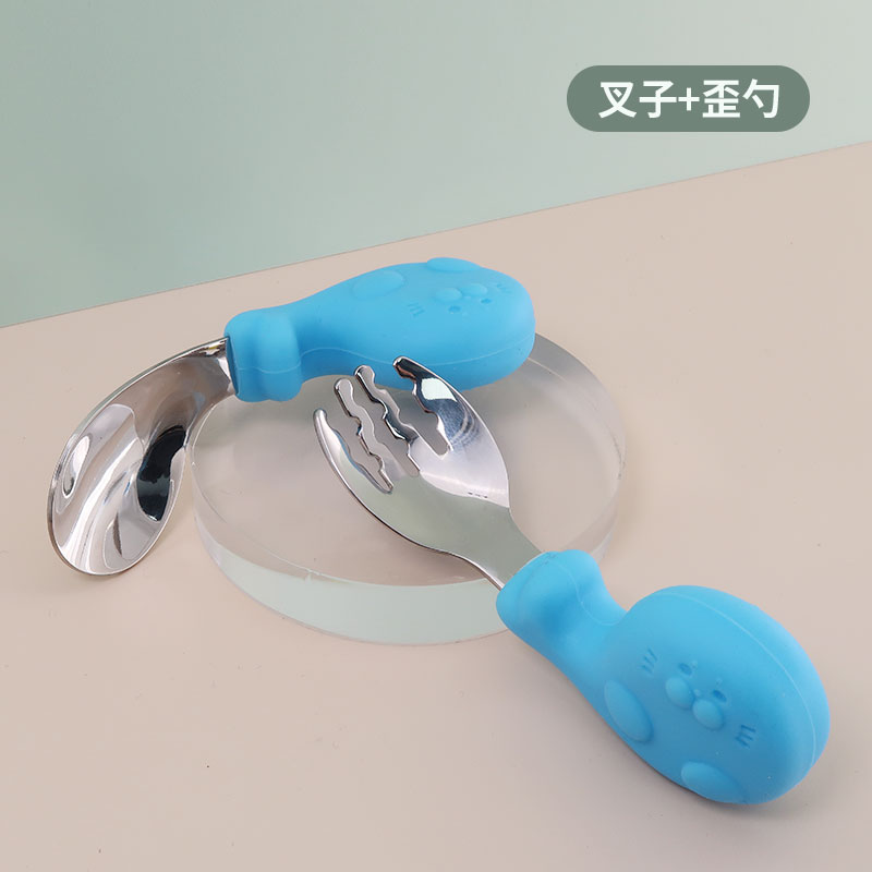 布奇BOOKY不锈钢叉勺子硅胶短柄1-3岁宝宝学吃饭辅食勺套装