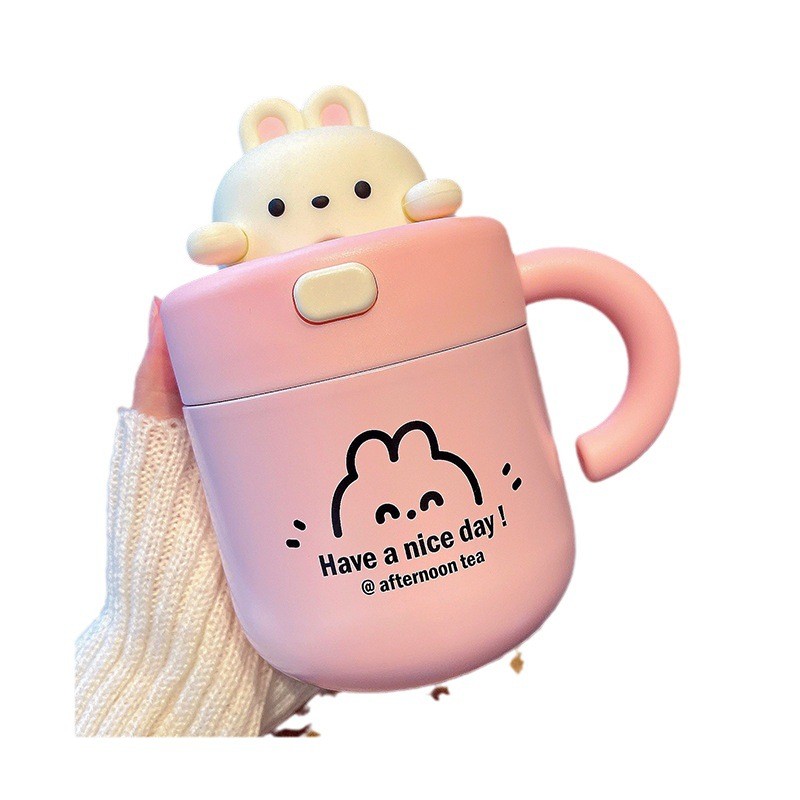 宝宝吸管杯喝水杯可爱小熊公仔办公杯带杯盖女生不锈钢少女心可爱甜美 316保温杯子