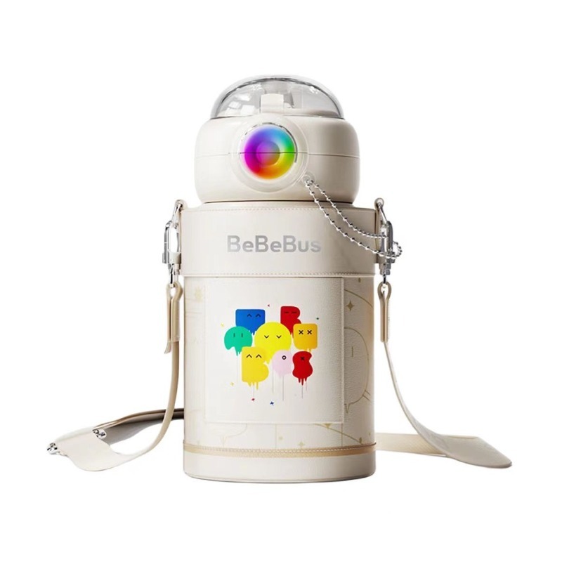 Bebebus彩虹保温杯吸管杯防摔不锈钢大容量学饮杯幼儿园户外水杯持久保温带提绳保温壶