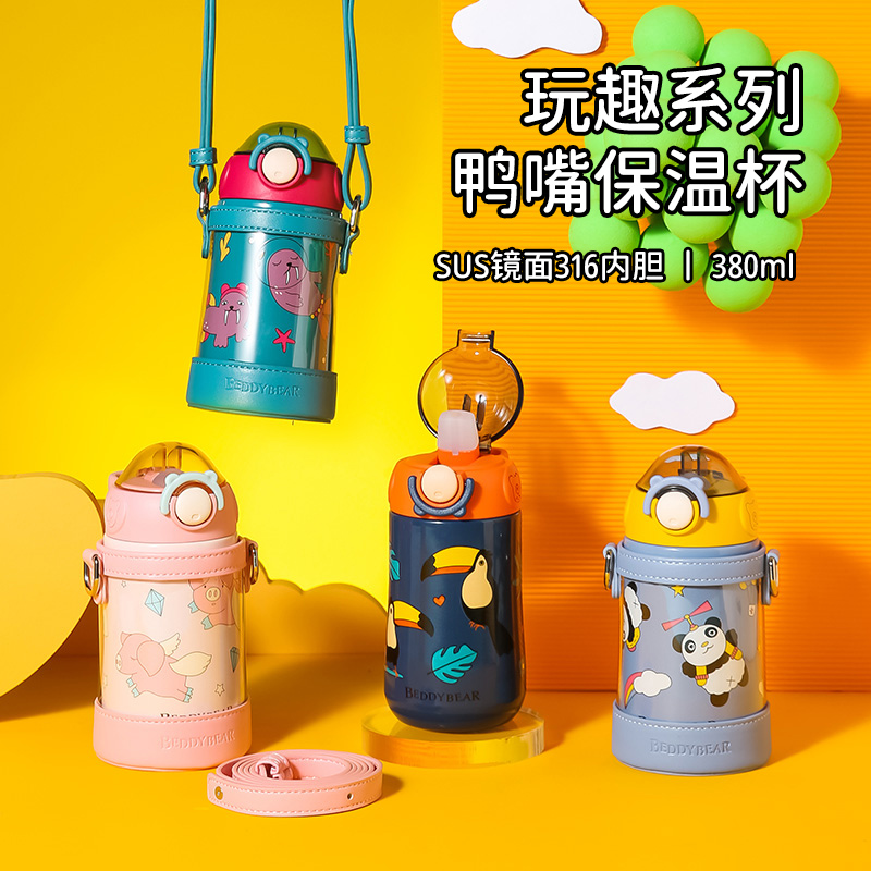 【品牌秒杀】杯具熊玩趣系列儿童保温杯儿童316内胆宝宝水杯鸭嘴杯380ml婴儿大容量喝水