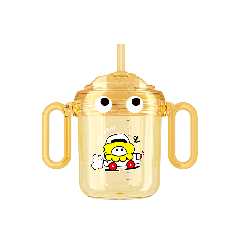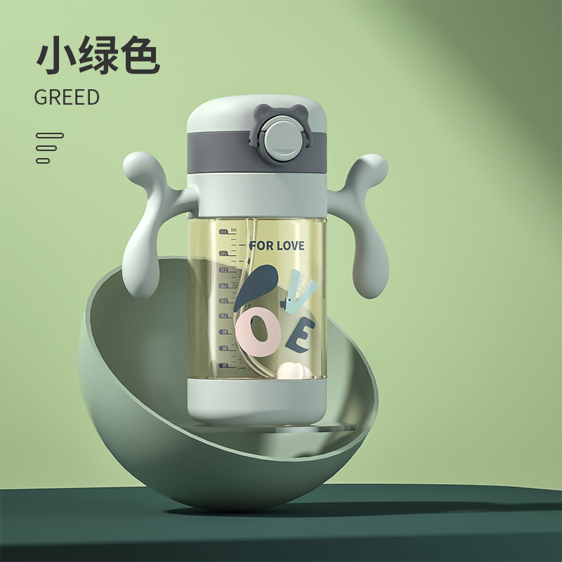 如山儿童牛奶杯1-2-3岁以上宝宝喝奶瓶PPSU刻度直饮吸管水杯防摔