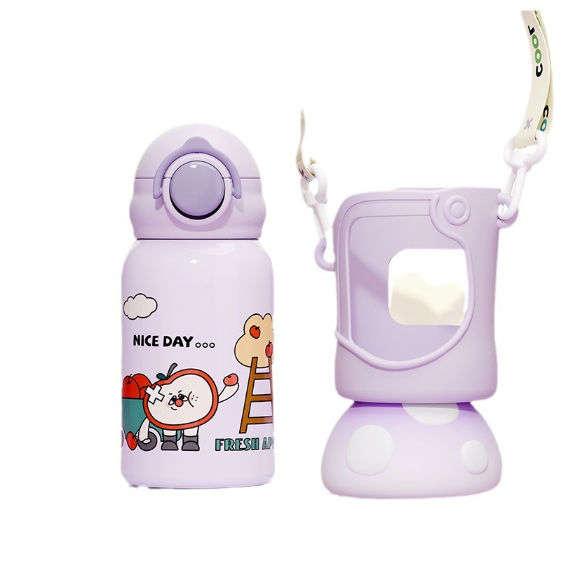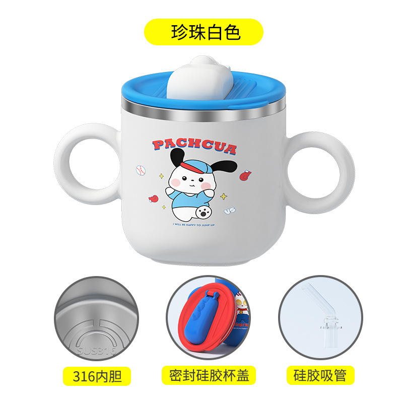 儿童保温杯新款卡通吸管杯背带提手便携学生杯幼儿园宝宝学饮杯子食品级水壶带杯套
