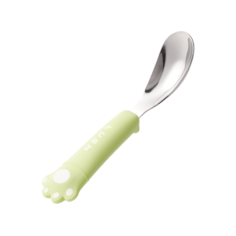如山宝宝自主进食辅食勺子婴儿学吃饭训练儿童不锈钢餐具元宝叉勺