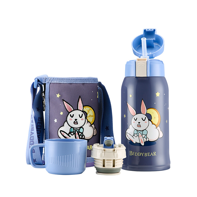 【品牌直供】杯具熊大容量儿童吸管保温杯宝宝水杯316不锈钢内胆杯子 复古浮雕600ml