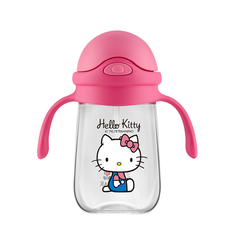 【品牌秒杀】杯具熊夏季水杯一杯两用杯绳+把手直吸吸管杯水杯婴幼儿水杯tritan 380ml