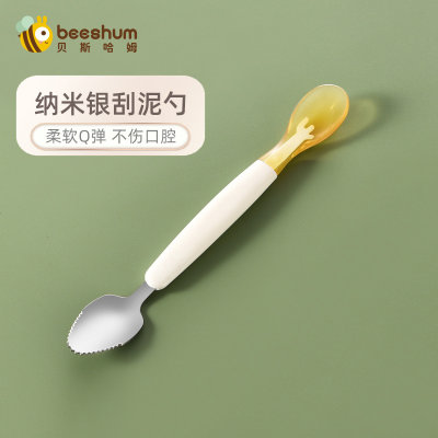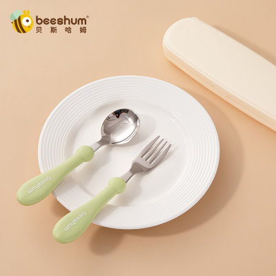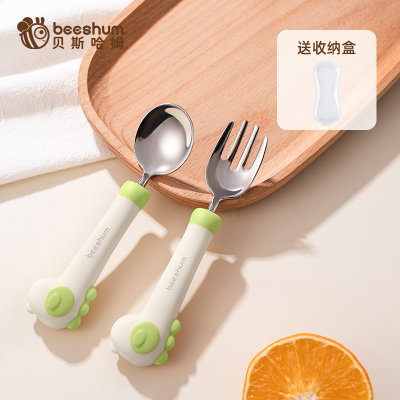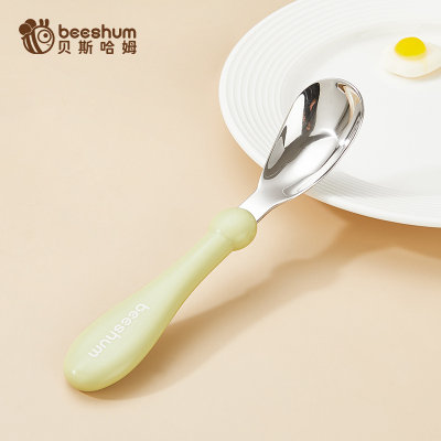 贝斯哈姆(beeshum)葫芦元宝不锈钢训练辅食勺 浅荷绿