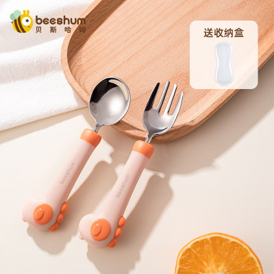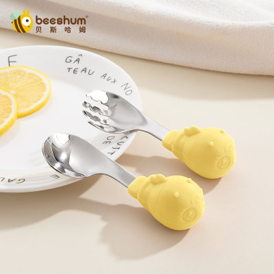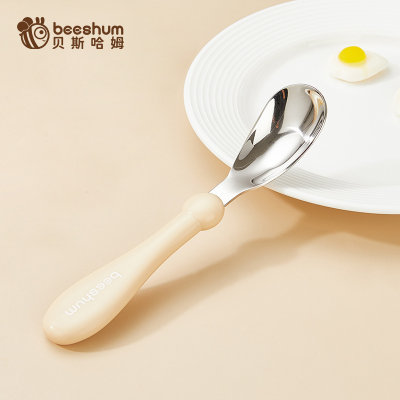 贝斯哈姆(beeshum)葫芦元宝不锈钢训练辅食勺 淡莹黄