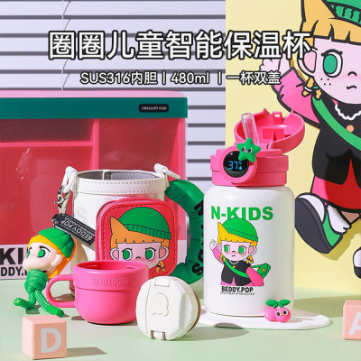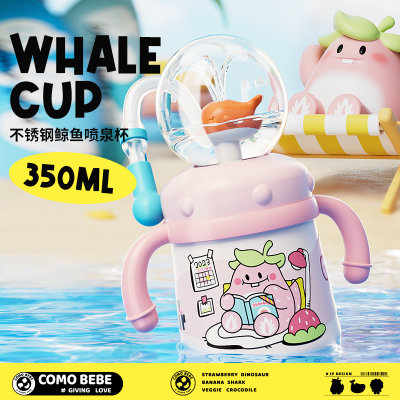 可萌贝比(comobebe)儿童不锈钢喷泉保温杯(带背带)粉色 350ml