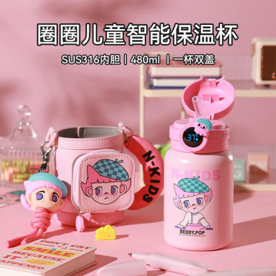 大肚吸管水杯大容量高颜值成人儿童外出便捷携带背带假日漫游保温儿童水壶壶提手壶