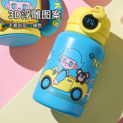 可萌贝比(comobebe)儿童不锈钢喷泉保温杯(带背带)黄色 350ml