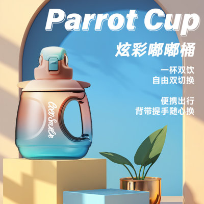 大肚吸管水杯大容量高颜值成人儿童外出便捷携带背带假日漫游保温儿童水壶壶提手壶