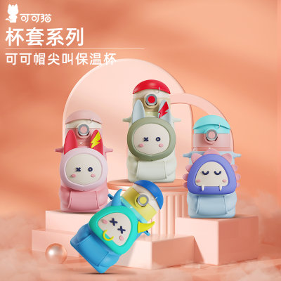 可可猫(Coco smile)可可帽尖叫吸管保温杯 蓝牛 470ml