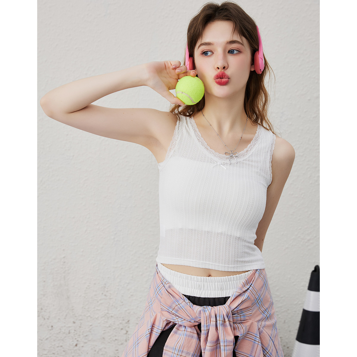 蕾丝花边弹力吊带修身内搭外穿短款上衣夏季纯色女式背心 497245