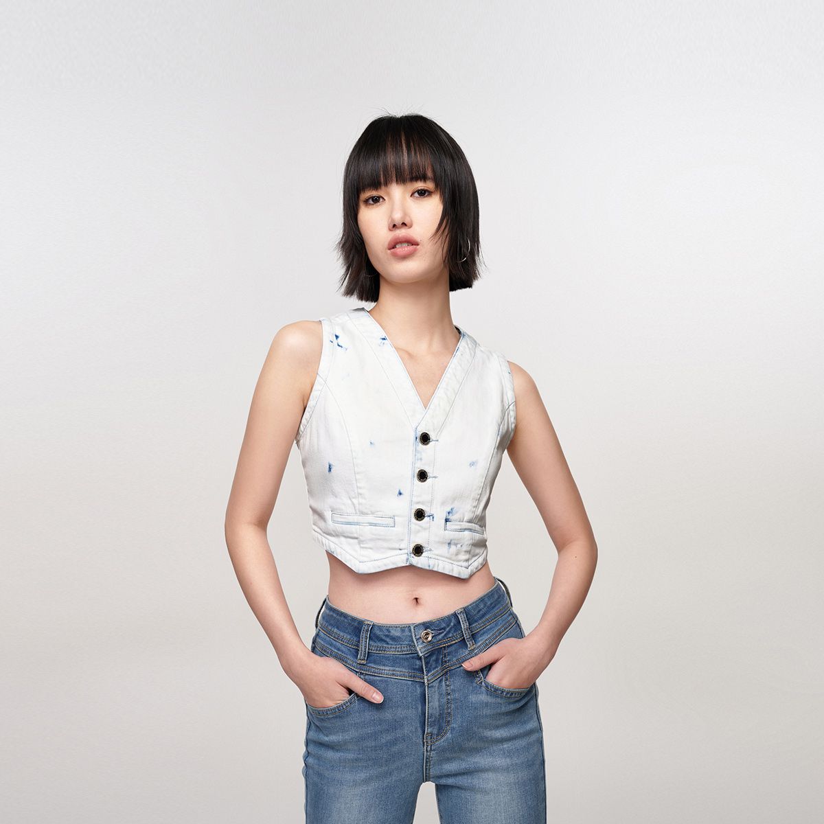 【时尚设计感】夏季活性染无袖短款牛仔马甲女 747994