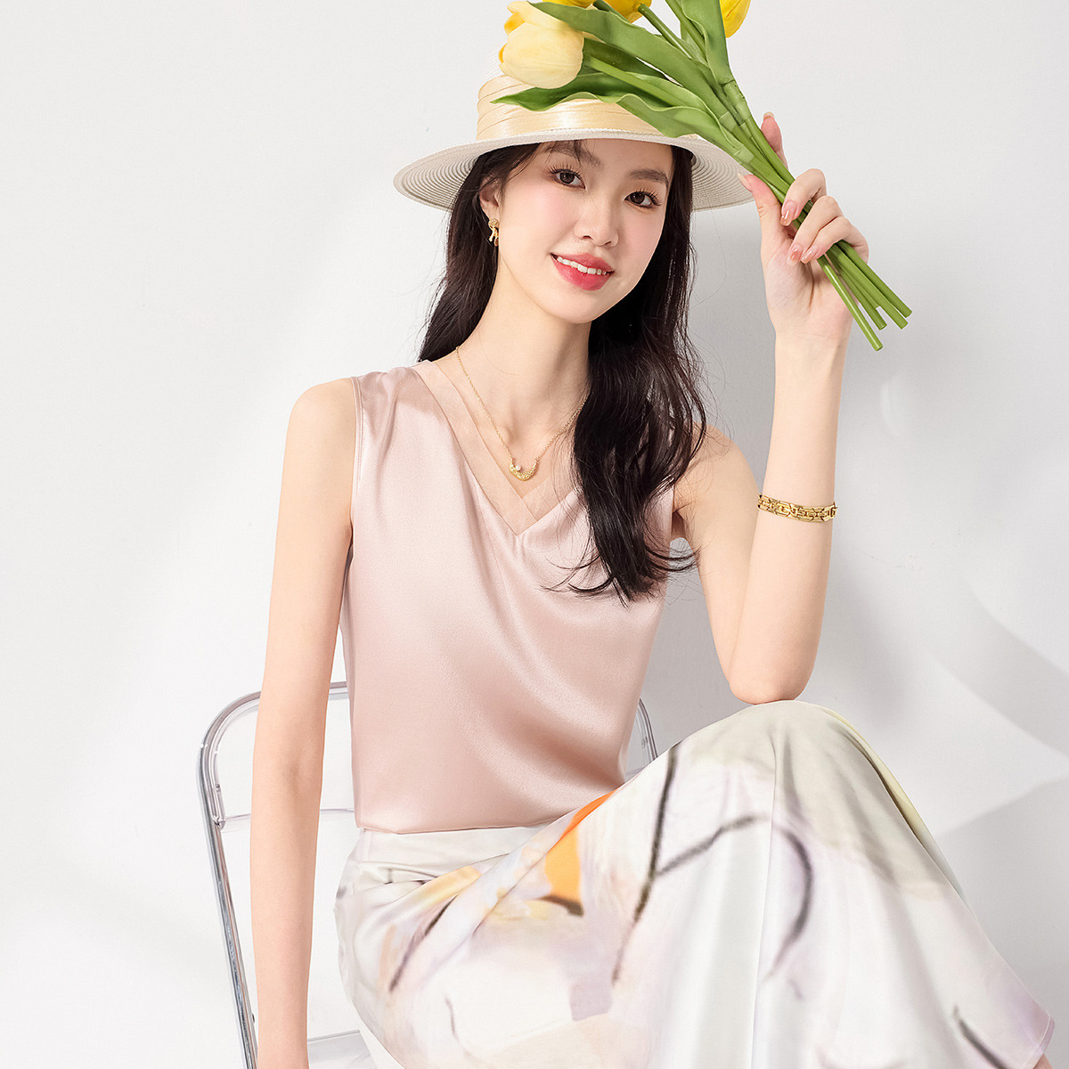 【16姆米】纯色V领桑蚕丝背心吊带无袖衬衣内搭 797651