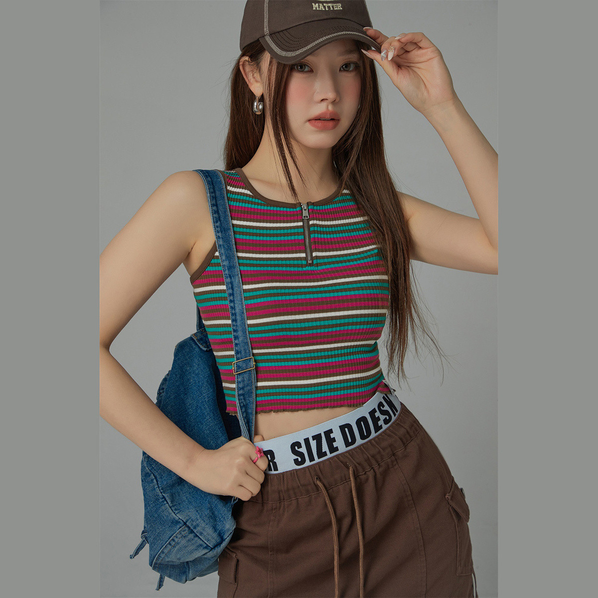 条纹撞色吊带女春夏个性显瘦设计感修身短款小背心 400403