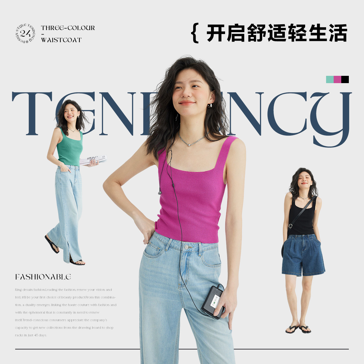 【简约风针织背心】夏款显迷人锁骨线慵懒休闲背心女 817026