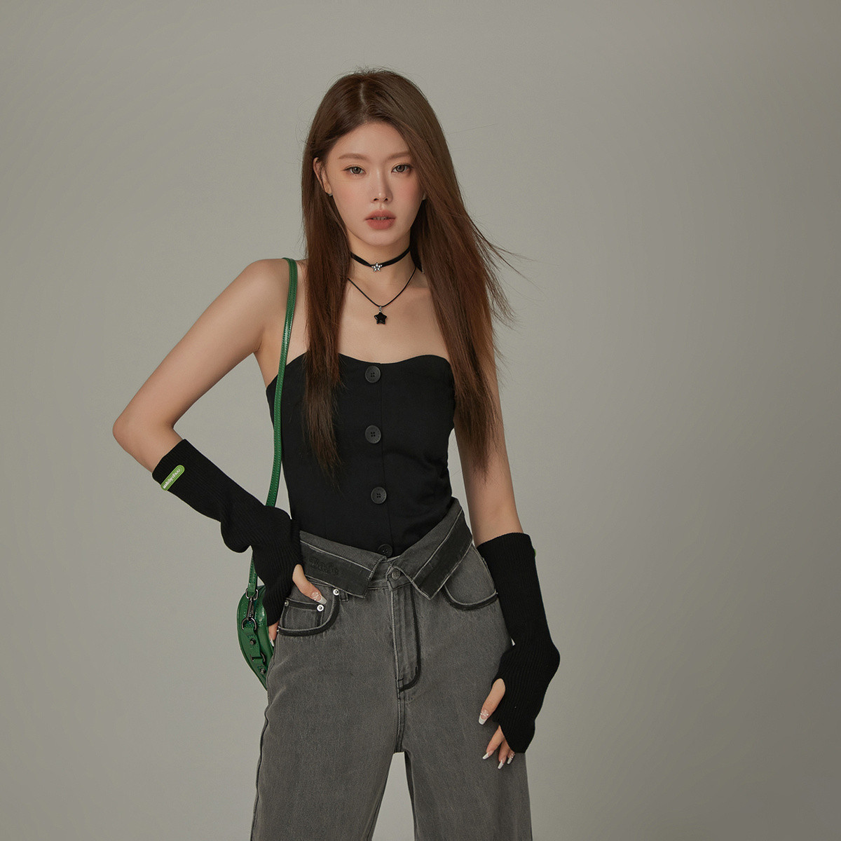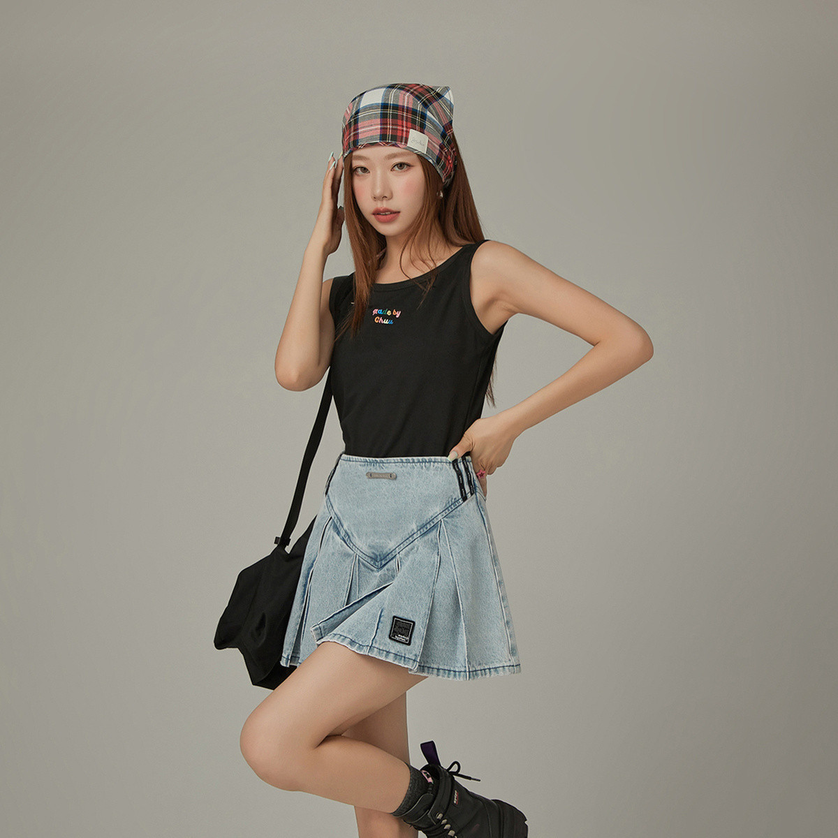 CHUU字母刺绣抹胸背心女春秋纽扣无袖辣妹修身上衣 441363