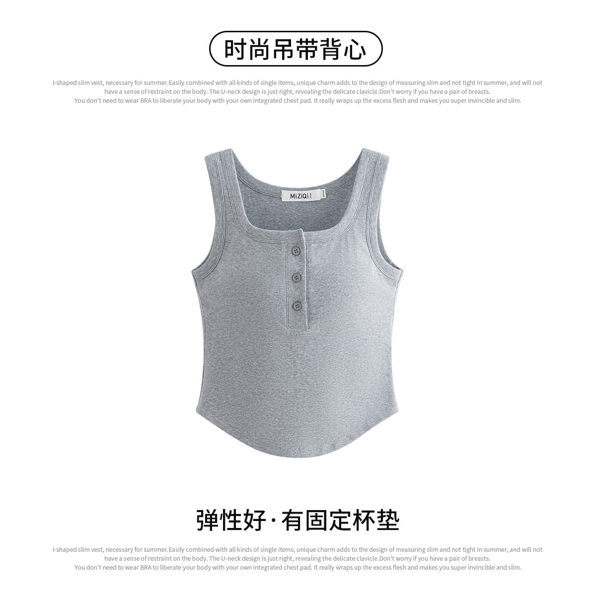 米子旗春夏季款女U领纽扣背心短款修身纯色上衣 408986