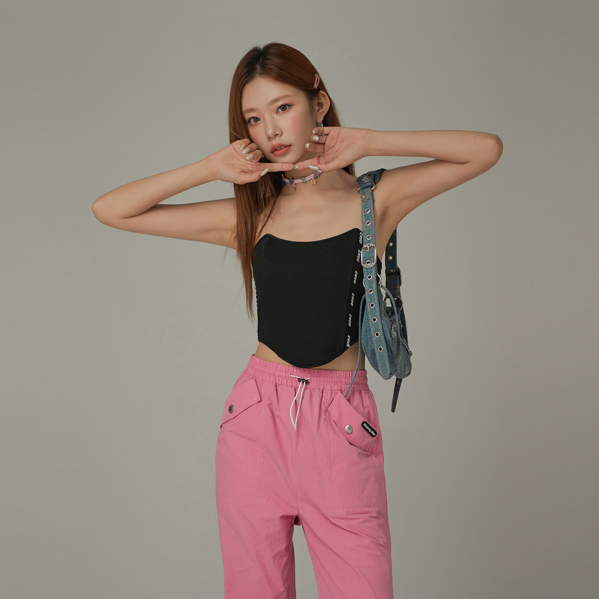 条纹字母抹胸女2025夏辣妹性感修身显瘦百搭减龄背心 525907