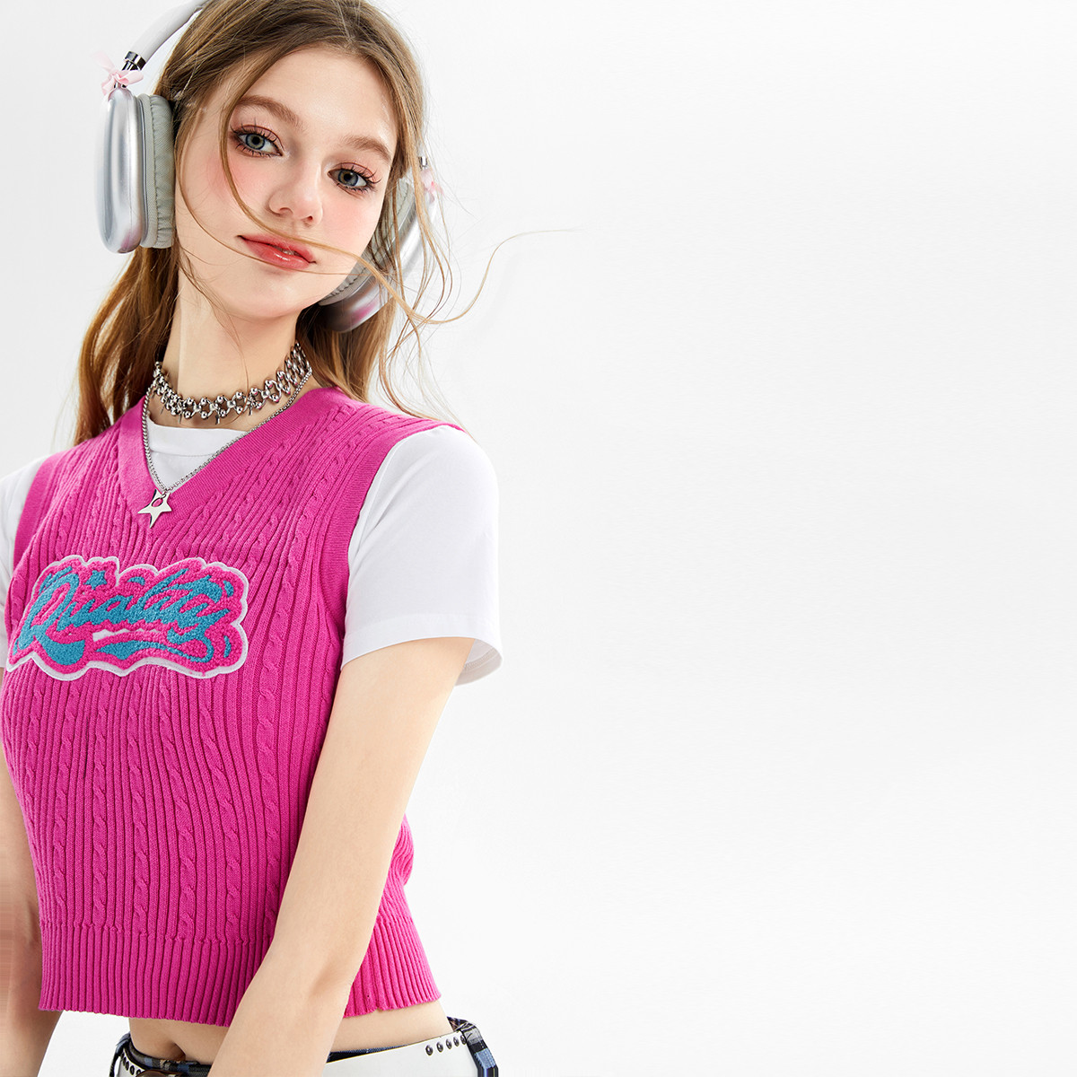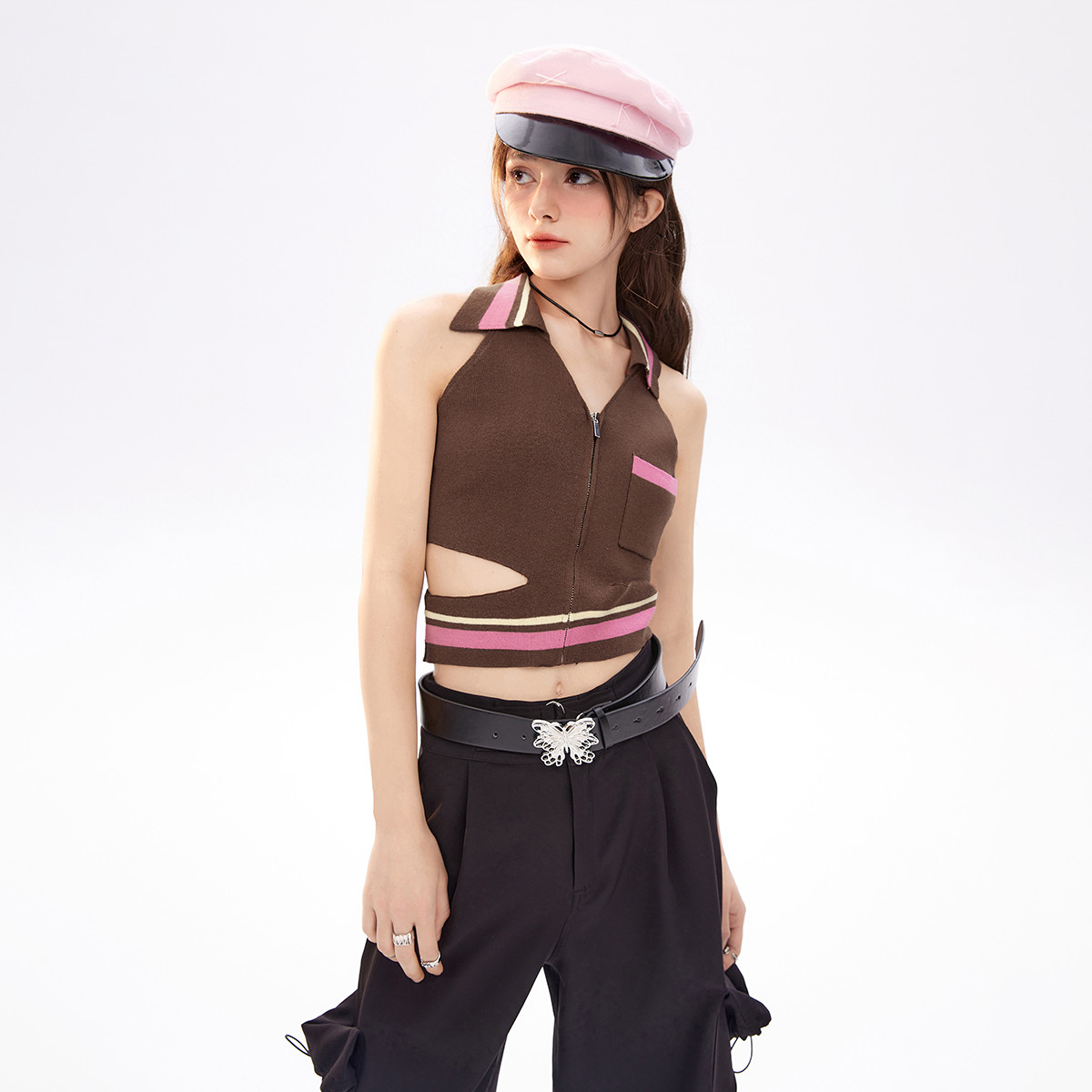 美式复古挂脖背心女内搭辣妹宽肩针织吊带衫 061332