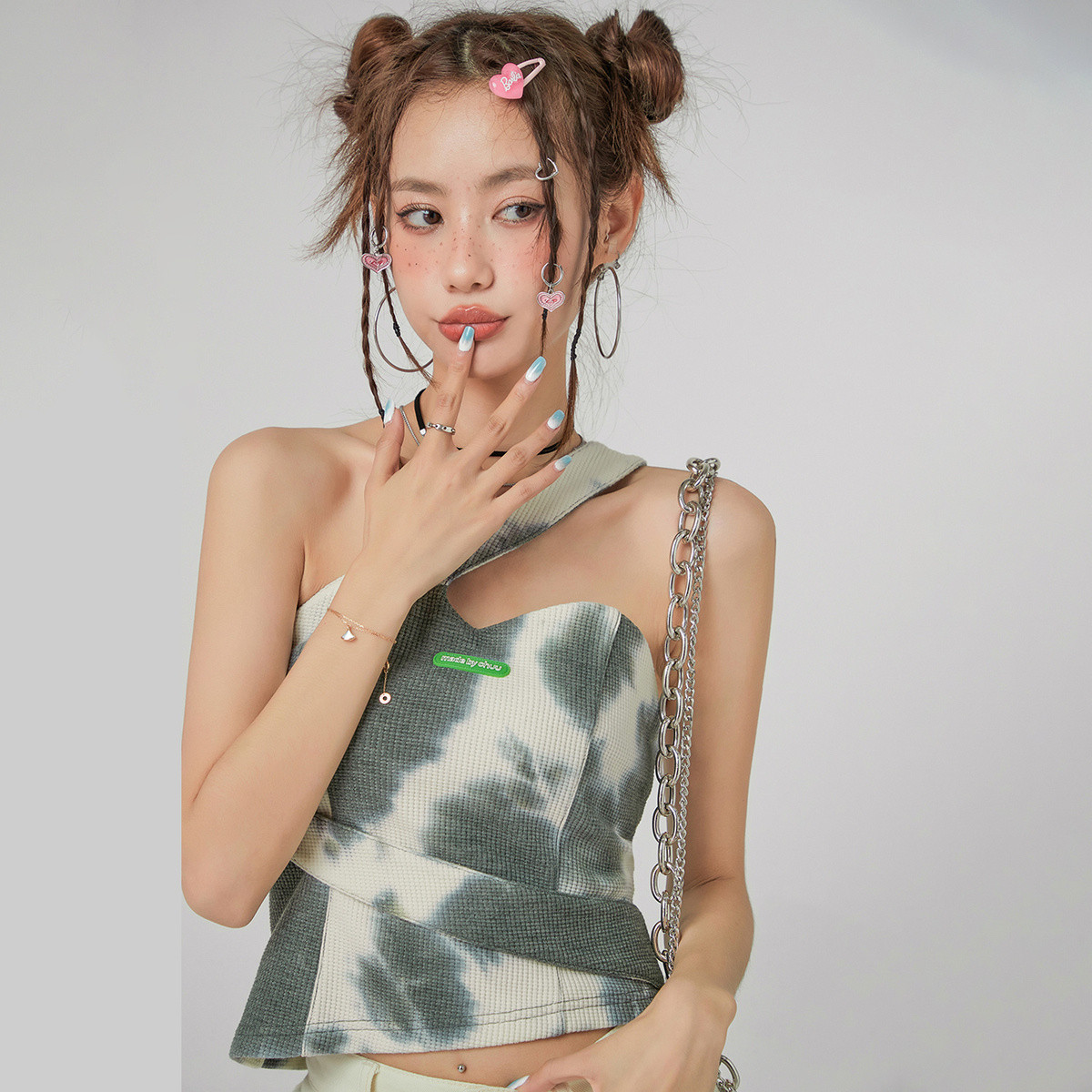 CHUU扎染单肩背心女春夏秋内搭修身辣妹短款上衣 770387