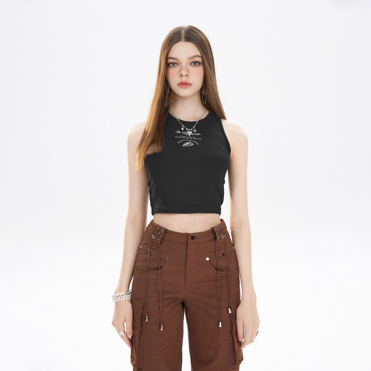 【闺蜜系列】嘻哈百搭复古叠穿背心女春夏秋装饰吊带 485075