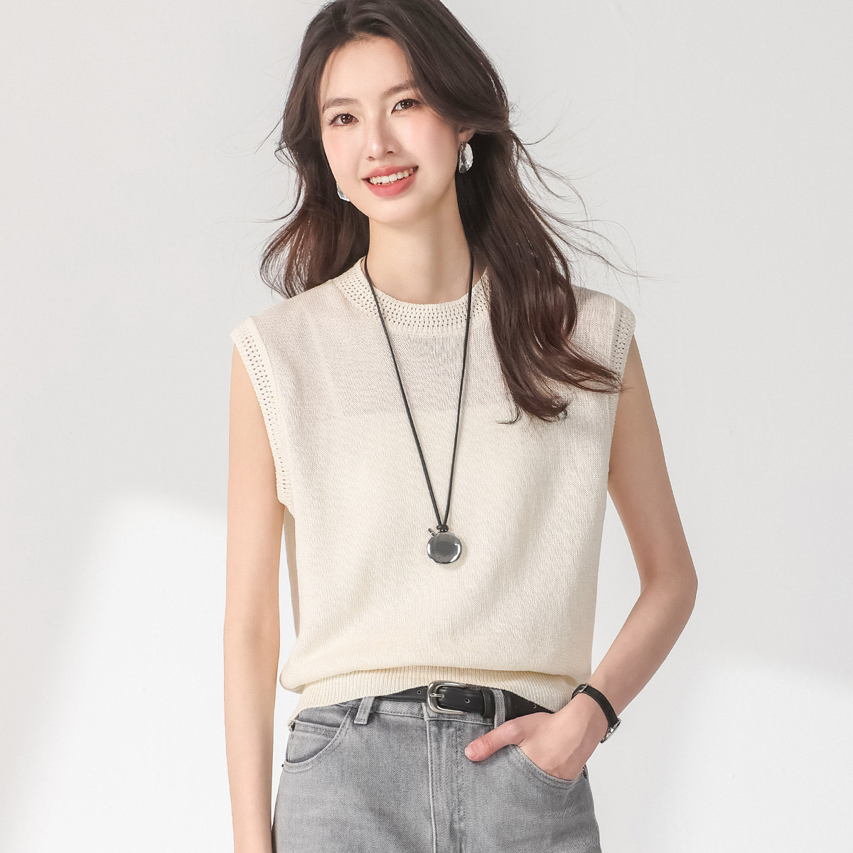 含桑蚕丝~圆领纯色休闲背心女简约针织马甲春夏薄款针织衫 677331