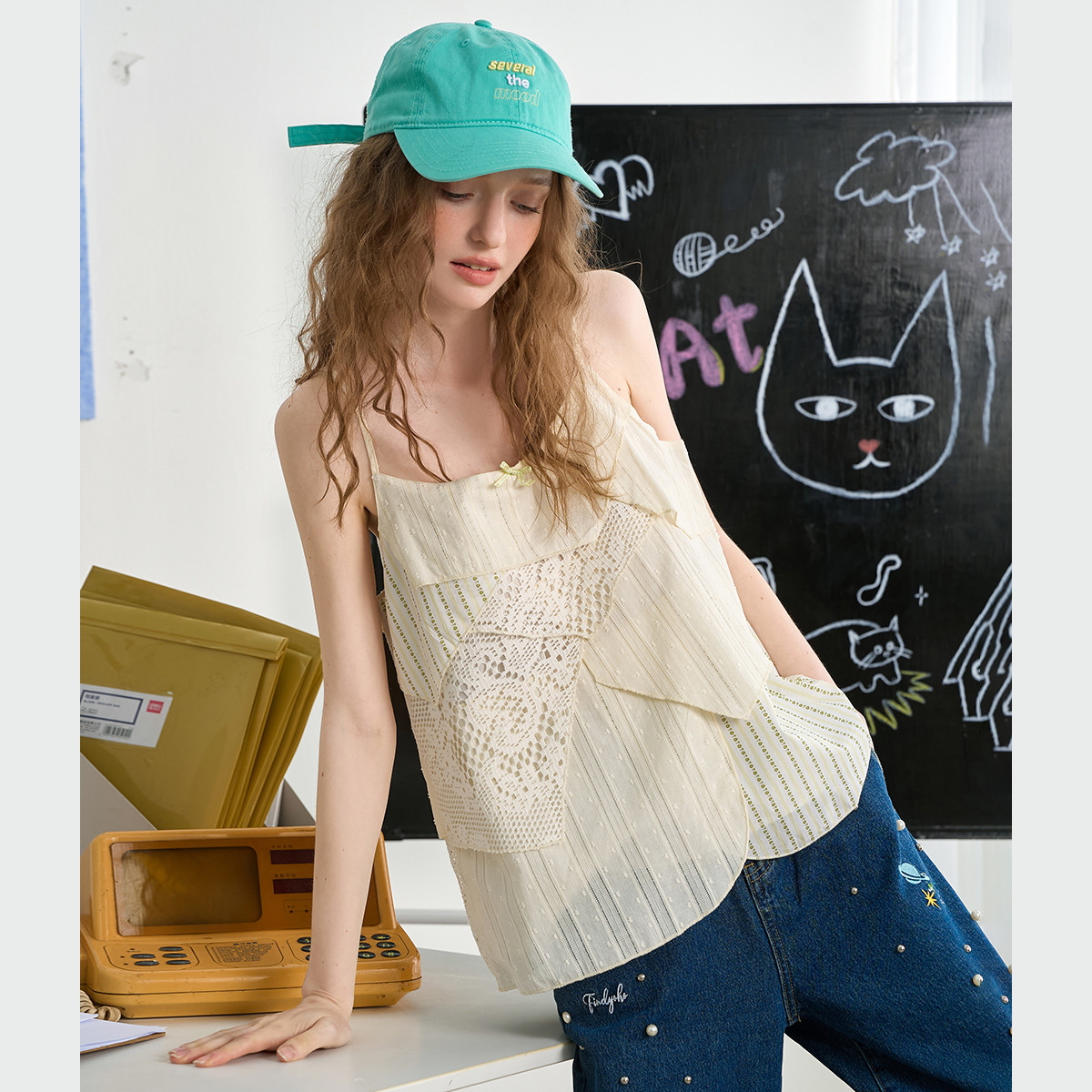 重工不规则织片拼接设计感吊带上衣2025夏季百搭休闲女式背心 319901