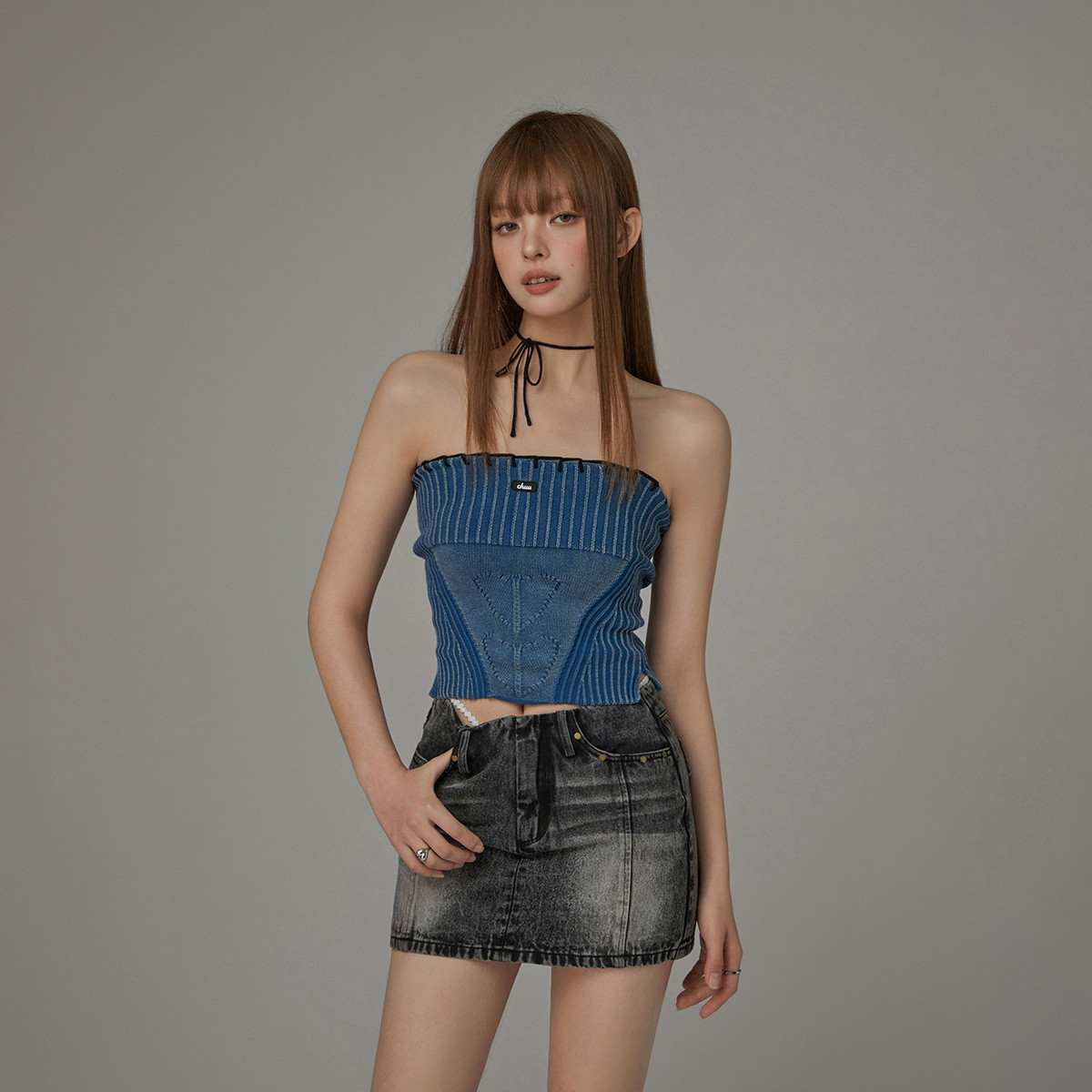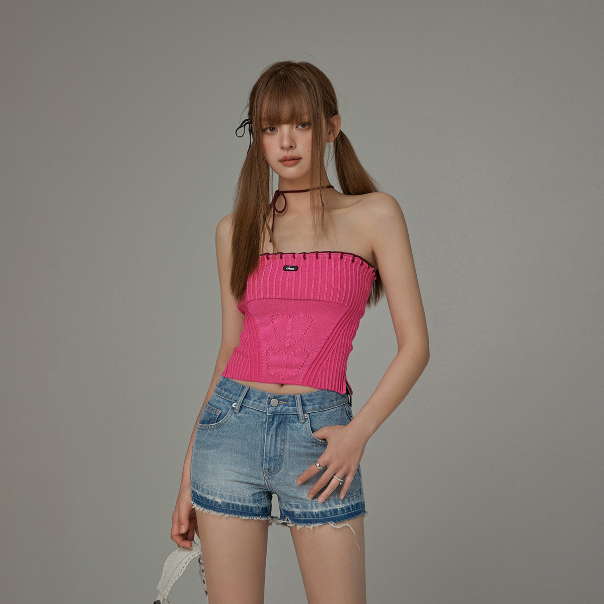 辣妹抹胸背心女2025夏设计感挂脖系带修身显瘦短款上衣 152659