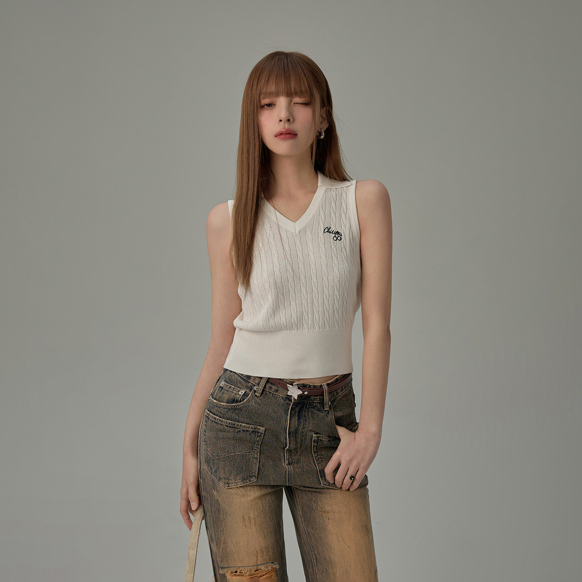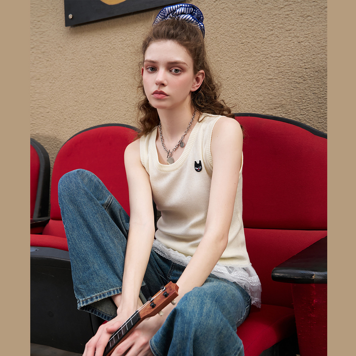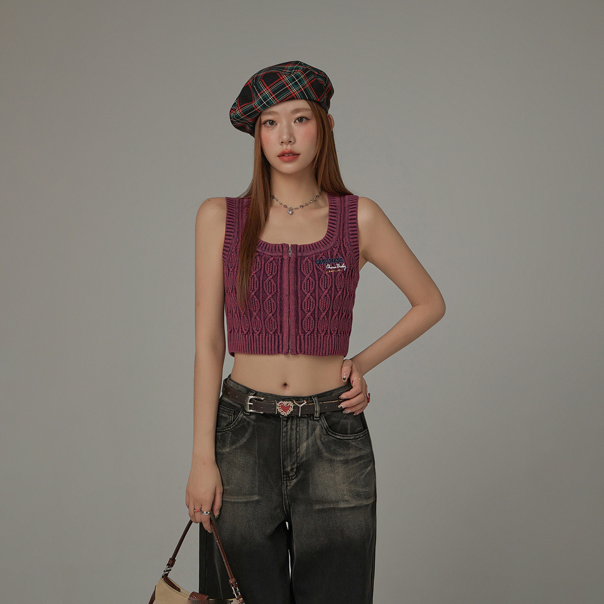字母刺绣拉链小背心女2025夏别致洋气无袖针织短上衣 772051