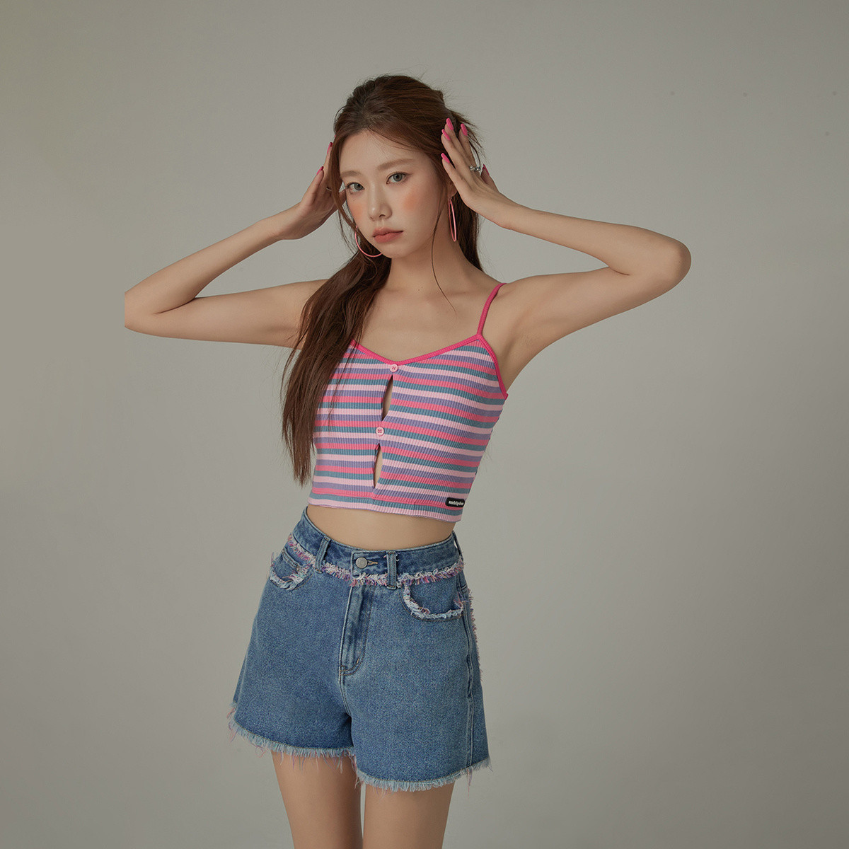 CHUU条纹背心女士春夏时尚甜辣撞色外穿吊带上衣 988307