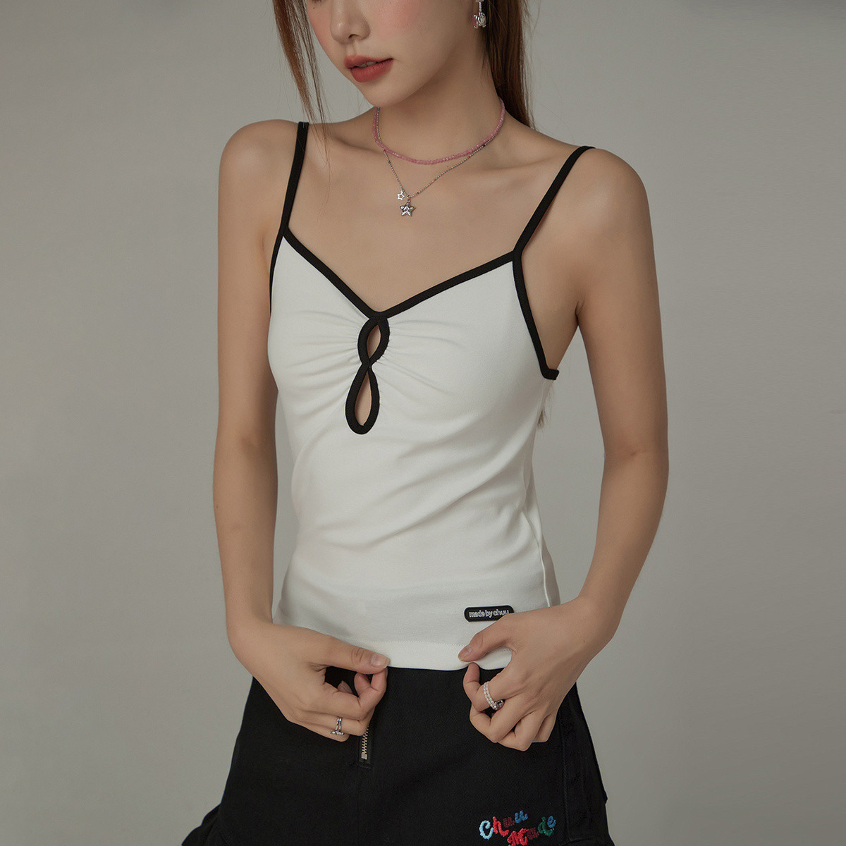 镂空吊带小背心女士秋辣妹外面撞色内搭短款上衣 508115