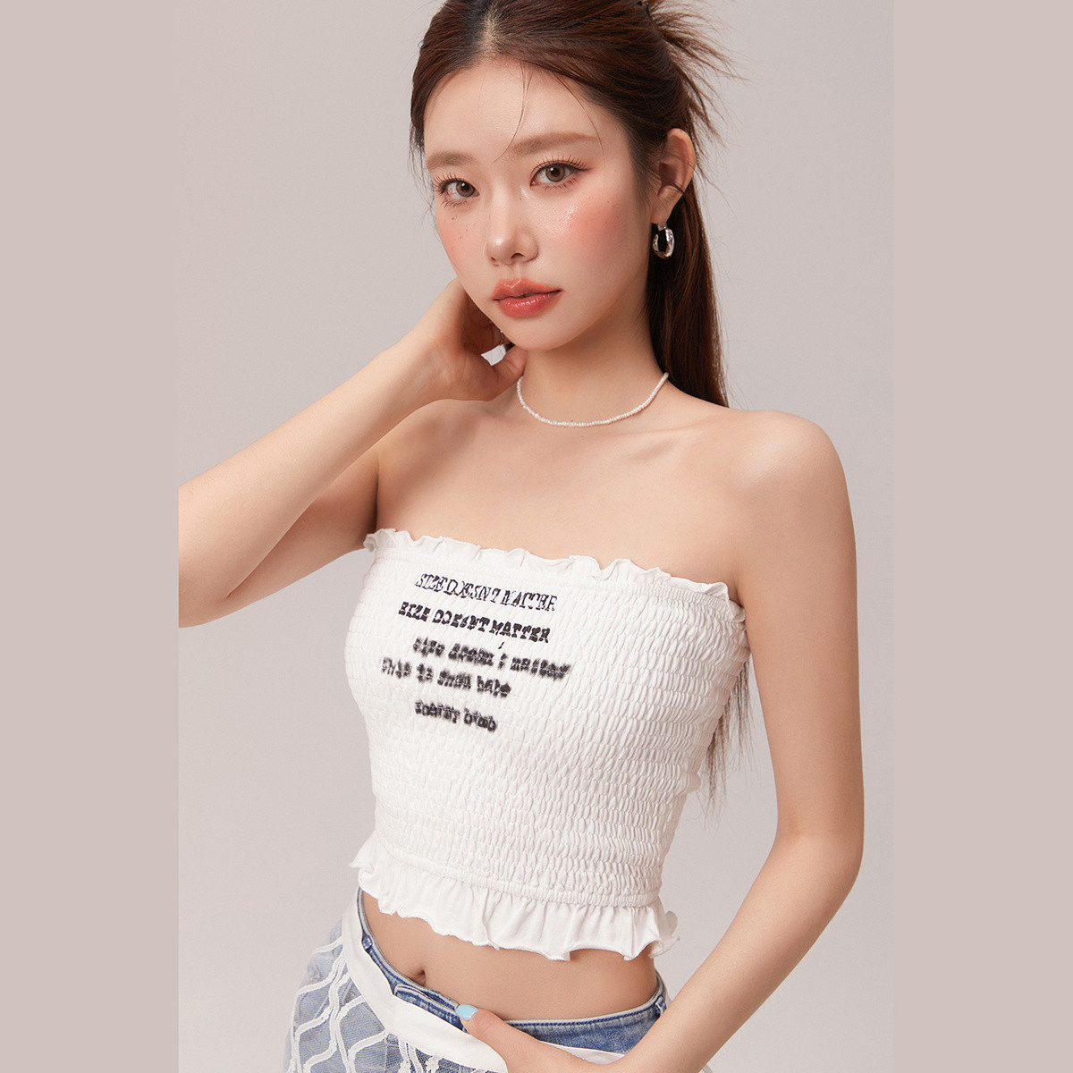 字母印花抹胸背心女2025夏辣妹木耳边褶皱无袖裹胸 800083