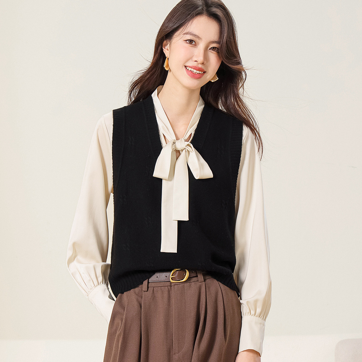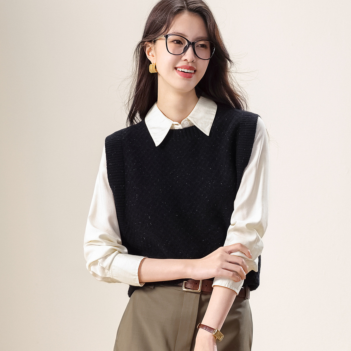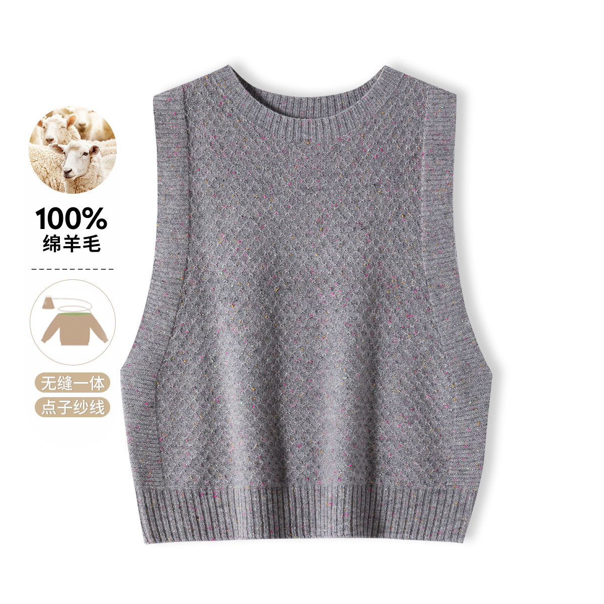 【100%绵羊毛】纯色圆领针织羊毛背心百搭马甲坎肩 859411
