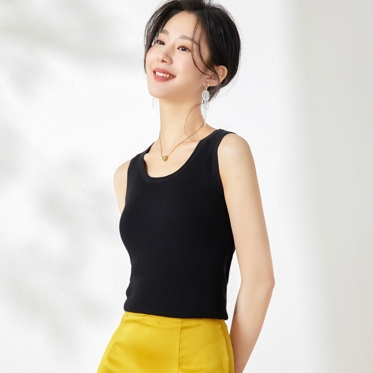 休闲百搭纯色抽条圆领含桑蚕丝针织打底背心马夹坎肩轻薄透气 392915
