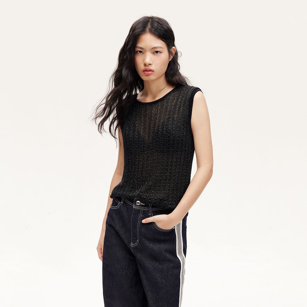 背心女光泽感镂空无袖圆领内衬背心简约个性 202705
