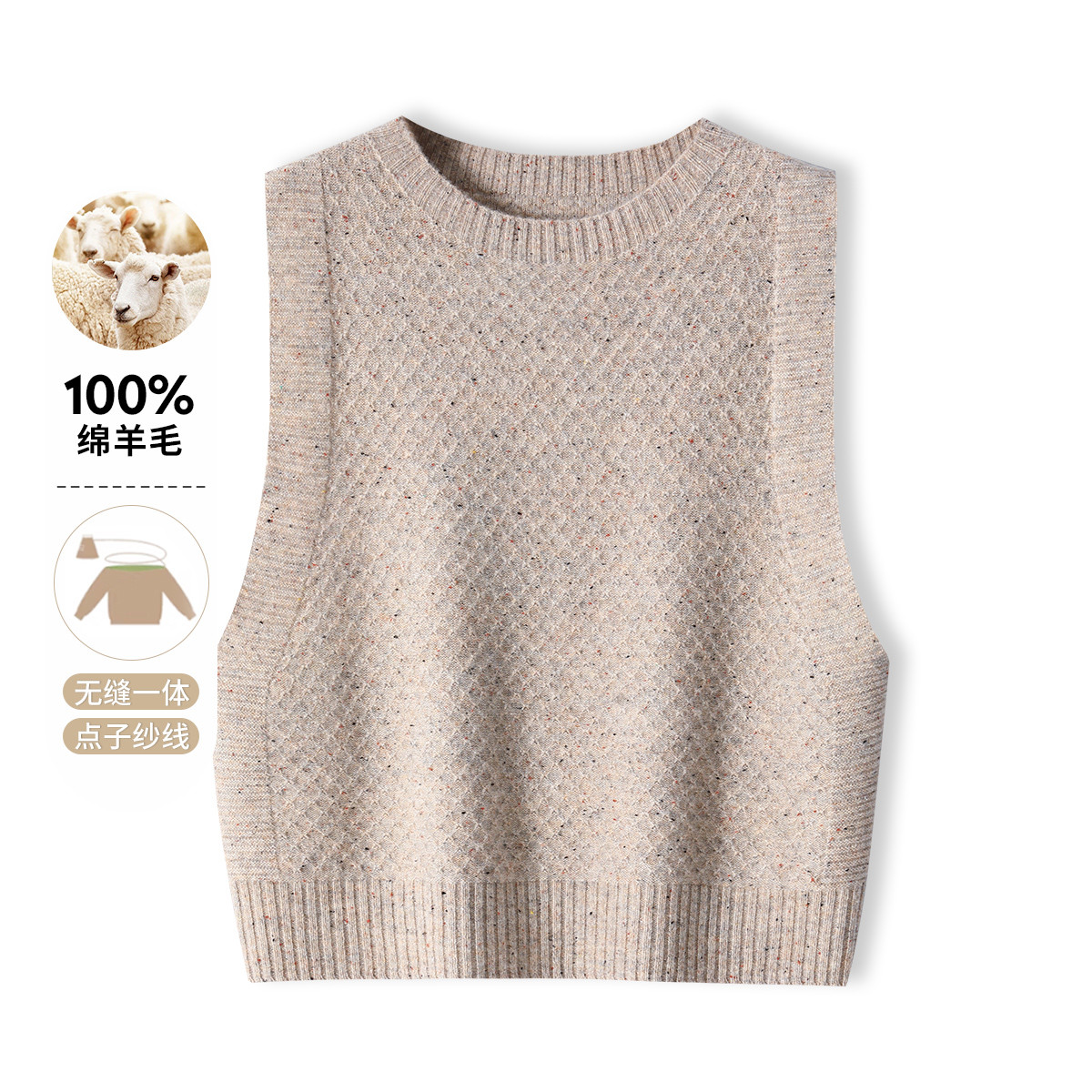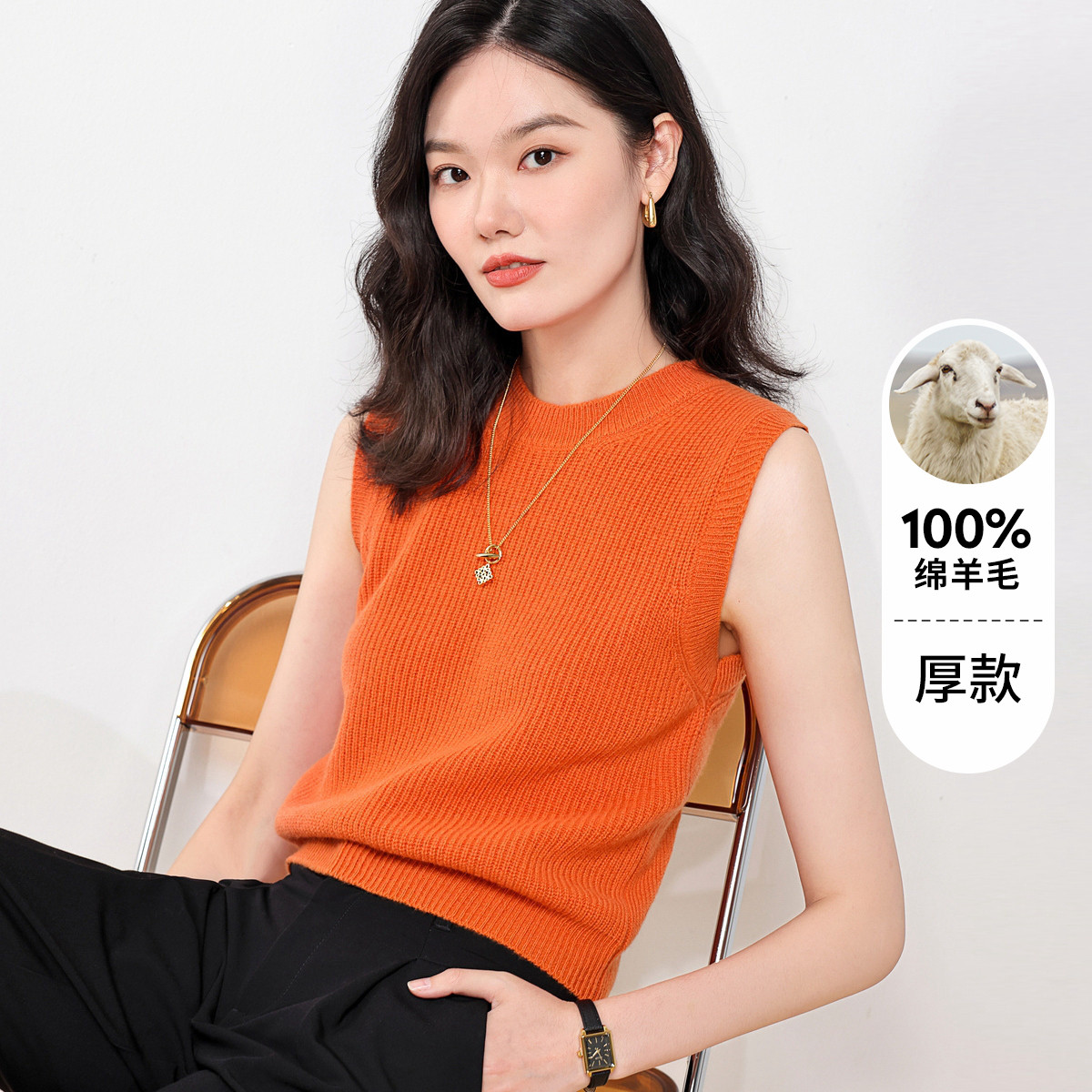 【100%绵羊毛】百搭纯色阔版羊毛杉女背心无袖针织衫马甲 975251