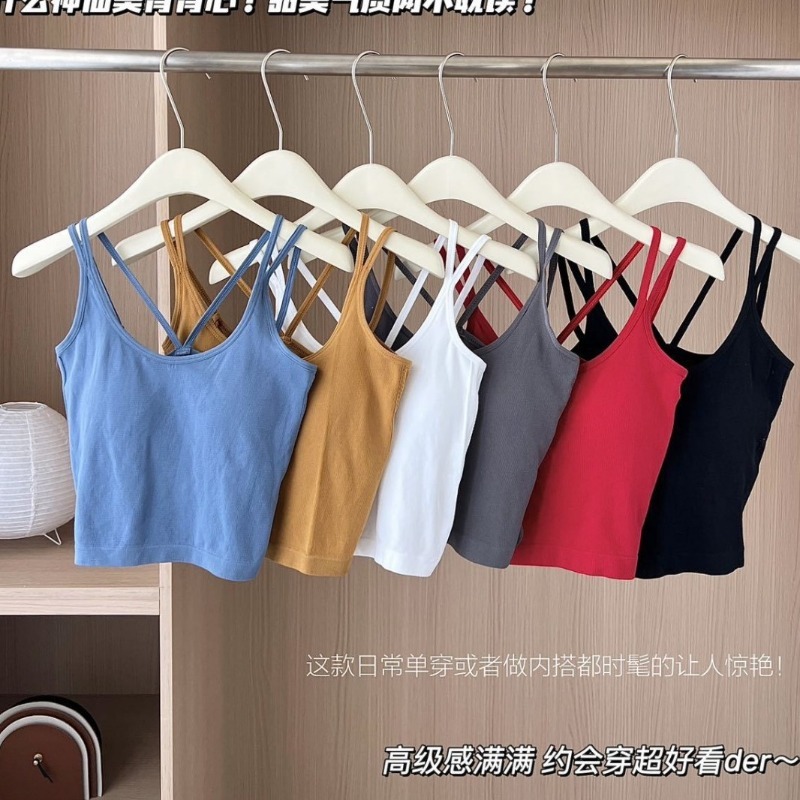蔓朵奇自带bra纯色吊带背心无束缚辣妹必入款