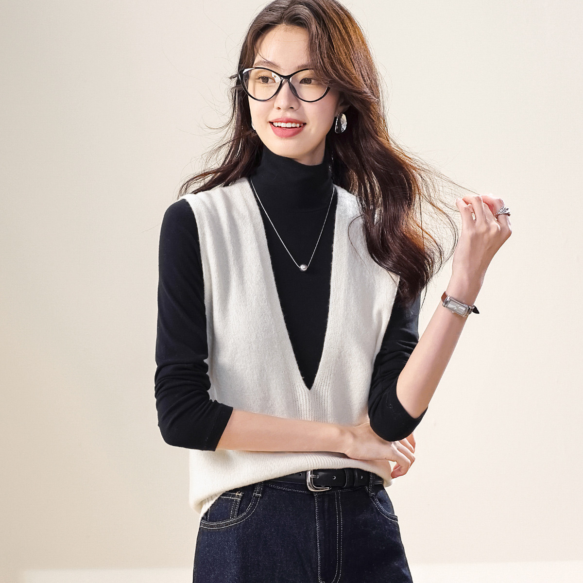 纯色V领春款100羊毛背心无袖毛衣坎肩马甲羊毛衫 039635
