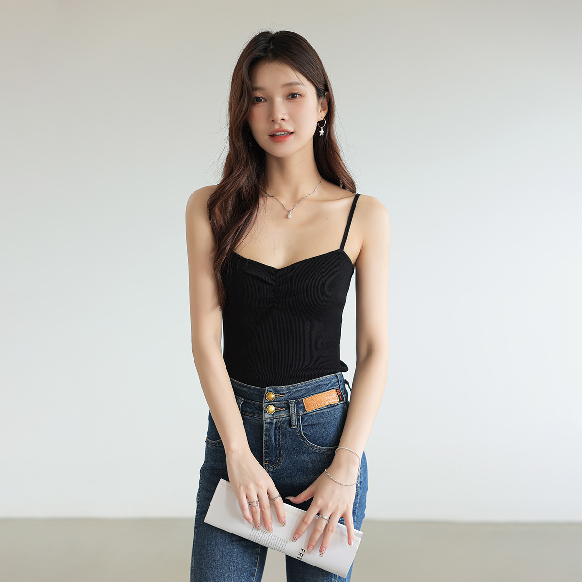 褶皱小吊带背心女内穿修身百搭休闲背心 703363