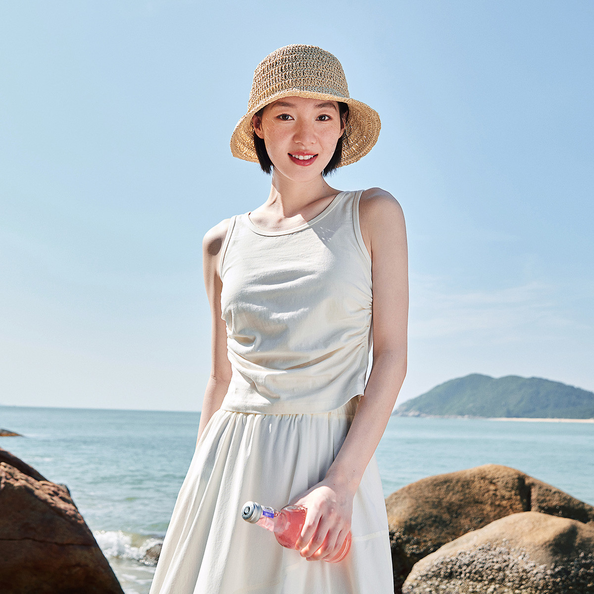 2024款夏季轻薄U型领短袖修身显瘦抽皱莫代尔背心女无袖上衣 967062