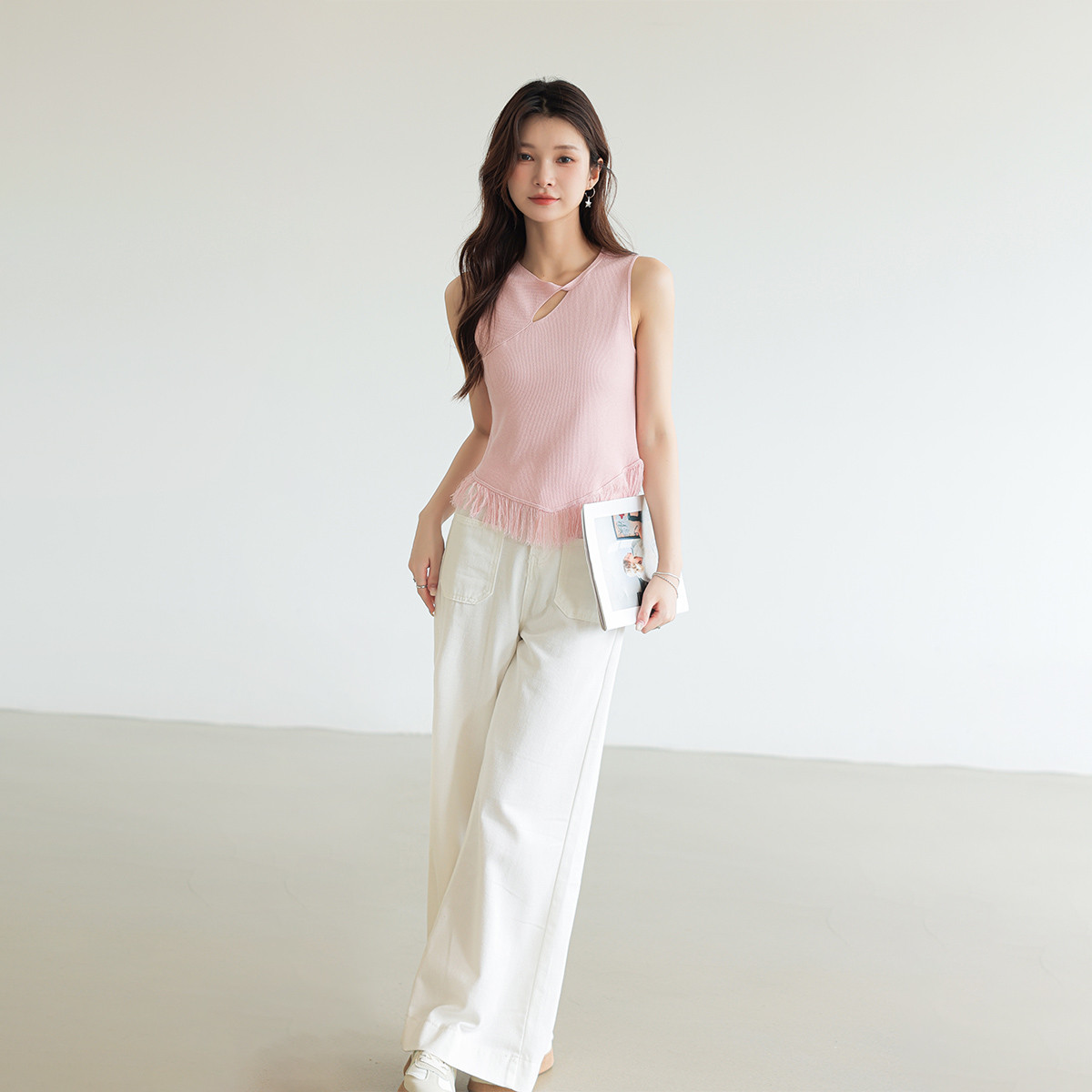 流苏针织背心外穿修身设计感小众圆领针织上衣 670595
